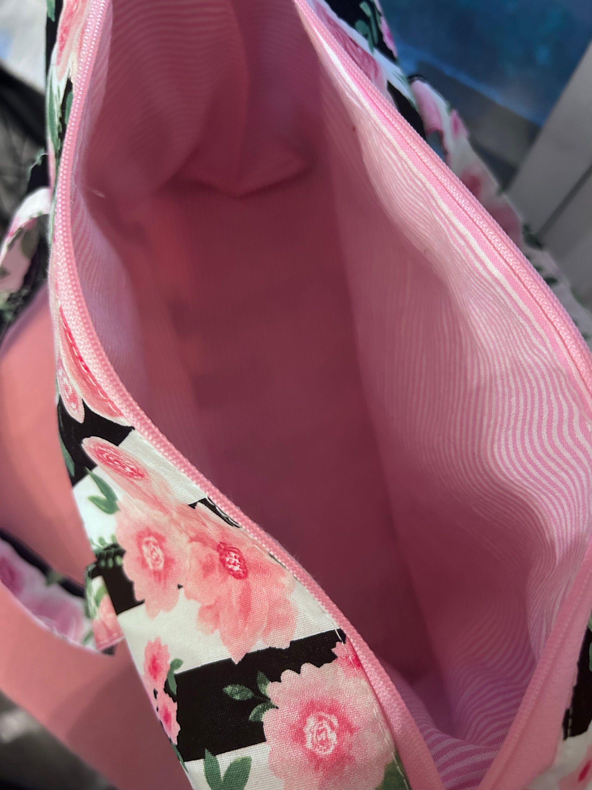 Add a touch of handmade charm to your daily essentials with the Midnight Garden Zipper Pouch. This navy and pink floral bag is perfect for cosmetics, toiletries, craft supplies, pens, tech accessories, or everyday on-the-go organization.