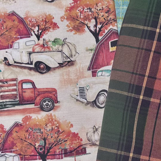 Bring cozy fall charm into your home with this handmade 24" x 24" quilted wall hanging, featuring warm autumn colors and adorable vintage trucks. Carefully stitched and lightly padded, this piece adds seasonal personality to any space ā entryway, kitchen, living room, or craft room.